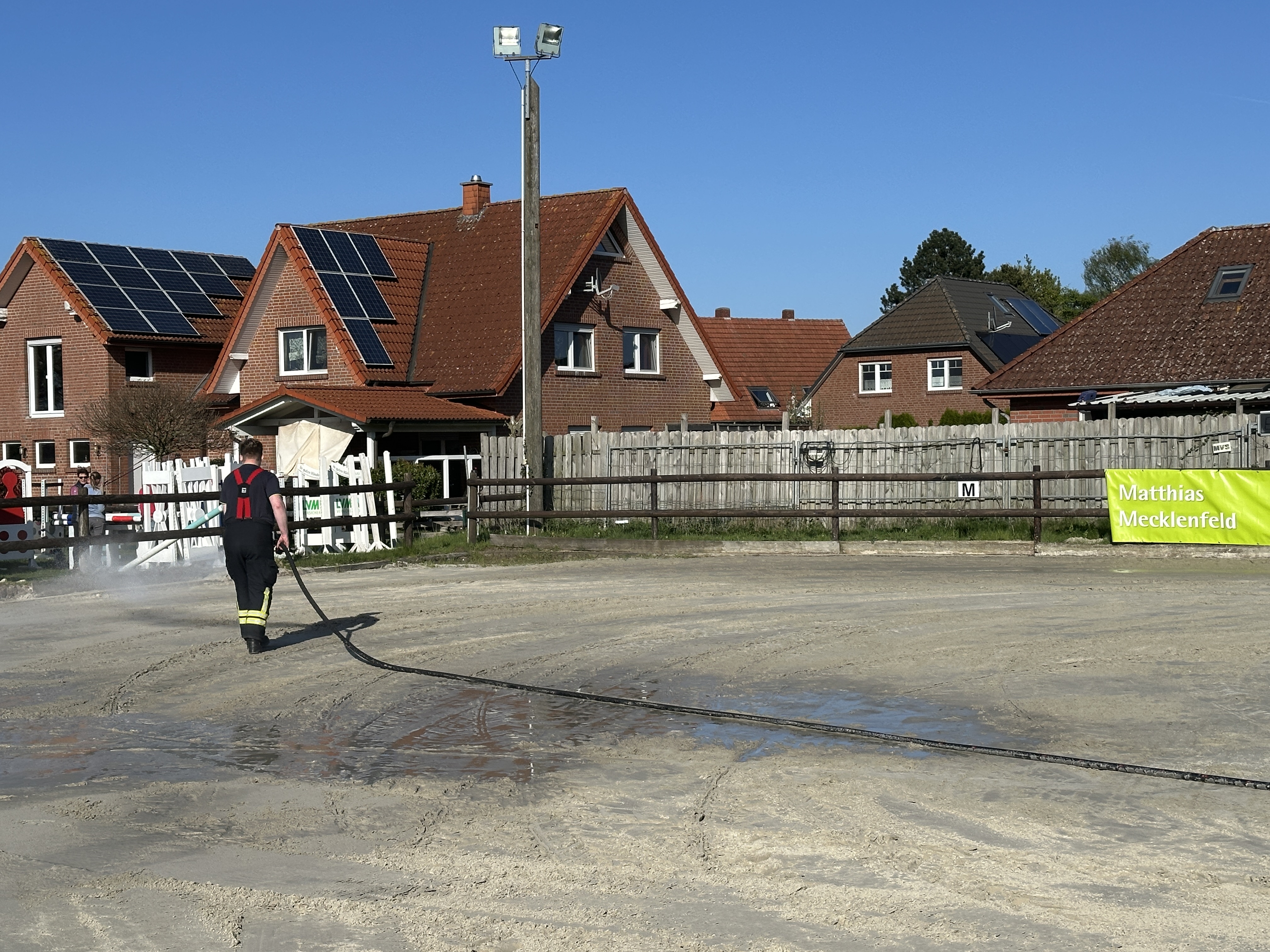 Um optimale Voraussetzungen zu schaffen, wurde im Vorfeld nicht nur der Reitsand in der Halle teilweise erneuert, sondern auch der Außenplatz noch einmal sorgfältig vorbereitet und abgezogen.